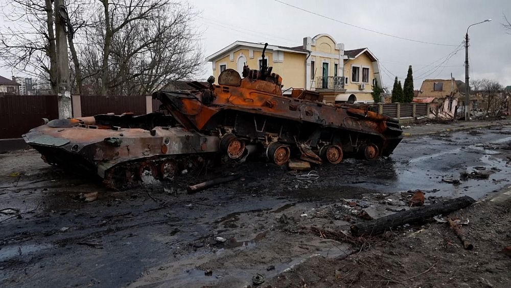 Streets in the northern Ukrainian town of Bucha were littered with the burnt-out wrecks of Russian military equipment on Sunday.http://dlvr.it/SMvFyS