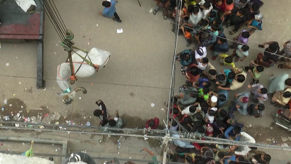 In Pakistan, cows hoisted from rooftop ahead of Eid al-Adha
