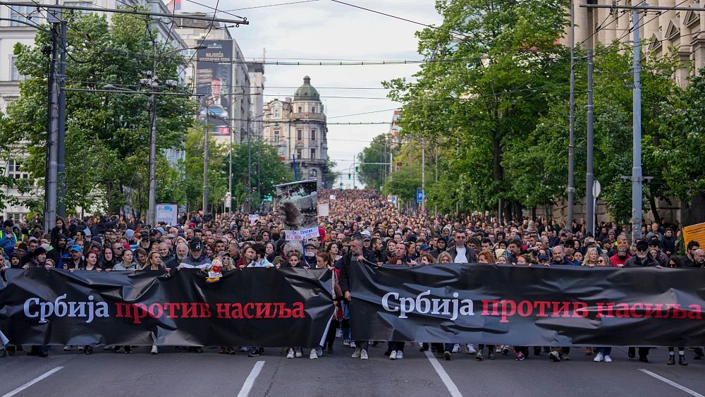 Watch: Thousands protest in Belgrade over mass shootings